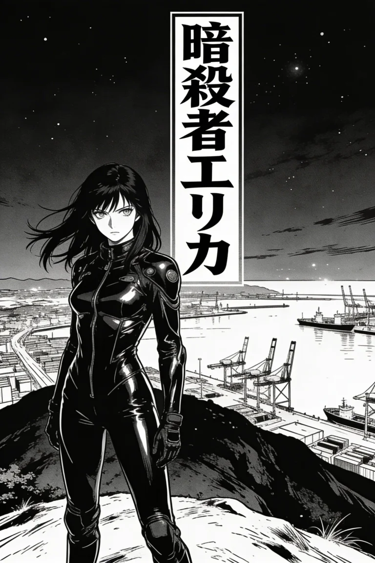 夜の冷たく鋭い空気感を持つ、写実的でコントラストの強い劇画調のスタイル。